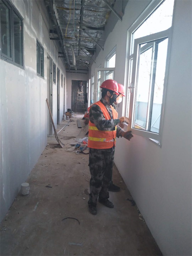 齐河县医院发热门诊是全县抗击疫情的关键所在,及时建设好发热门诊就是为阻击疫情做出的最大贡献。时间紧、任务重,旗舰集团集中精干力量,顶住材料供应和施工人员难到位的双重压力,多方面协调,做好工程建设的准备工作。全体参建人员,以“火神山”“雷神山”建设者精神来激励自己,夜以继日、加班加点,发扬艰苦奋斗的精神,全心全意为疫情防控服好务。
