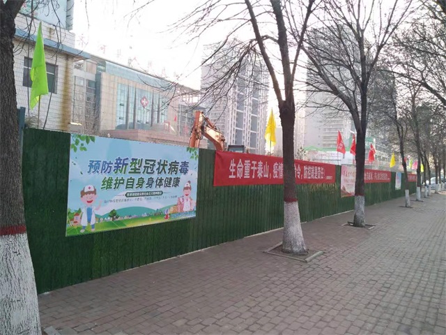 在建设过程中,为做好疫情防控,对现场施工人员每天至少测量两次体温,做好详细登记,安排专人按时对现场进行消毒杀菌,同时在围挡及醒目位置设置防疫标语,提醒参建人员必须做好个人防护。