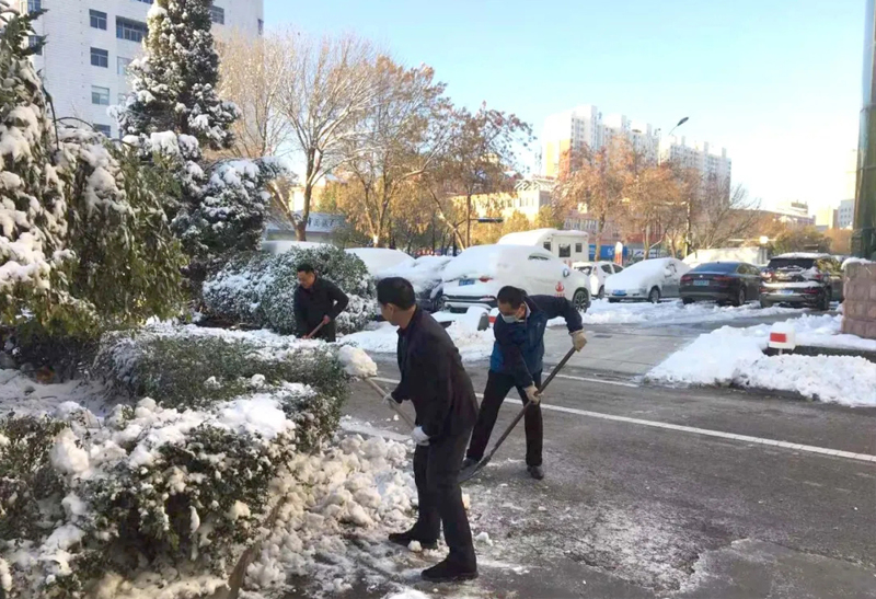 经过11月7日罕见的暴雪和低温,集团机关院内和门前道路被结冰的积雪覆盖。8日一早,党支部书记韩利同志带领机关人员,拿起铁锨、扫帚等工具,集中清理积雪。严寒的天气丝毫没有影响干劲,大家热情高涨、分工合作,积雪很快清理干净,集团机关院内和门前道路恢复了整洁,为干部职工和行人提供了安全便利的通行条件。