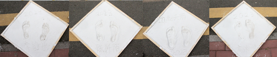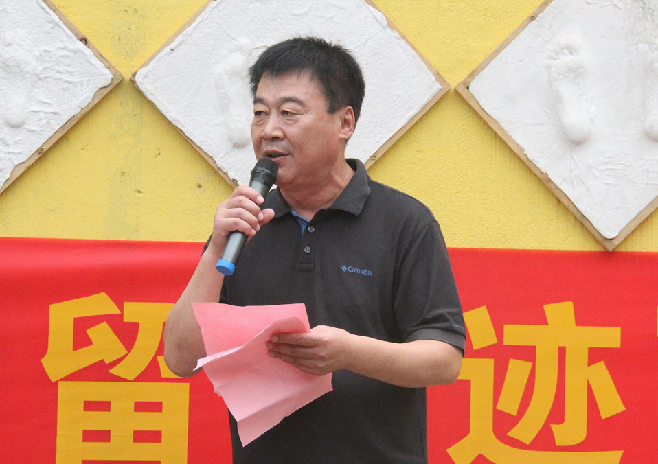 在明星大道前,王洪光同志讲述集团优秀学子留足迹活动的历史,并鼓励四位同学奋发图强、勇攀高峰。