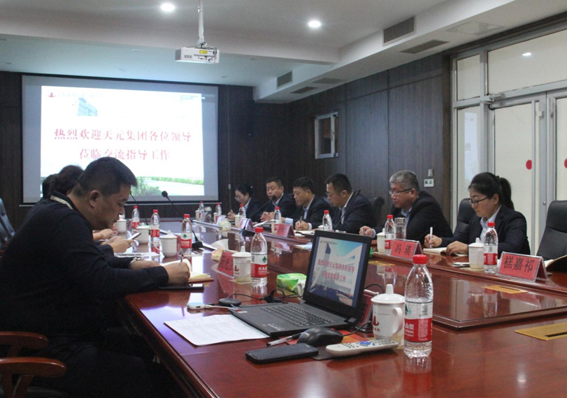 10月26日上午,德州天元集团工会主席亓永生与分公司经理、行政管理部门负责人等一行来访交流座谈,董事长王洪光、相关部门人员参加交流活动。