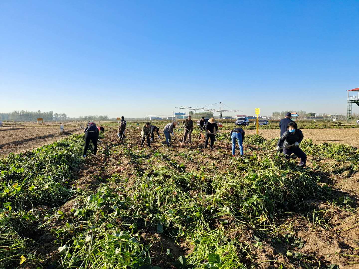 10月23日上午,集团组织机关人员到富足古酿小镇“天圆地方”地块分组收地瓜。