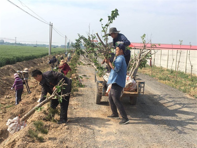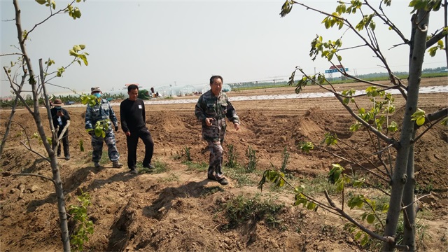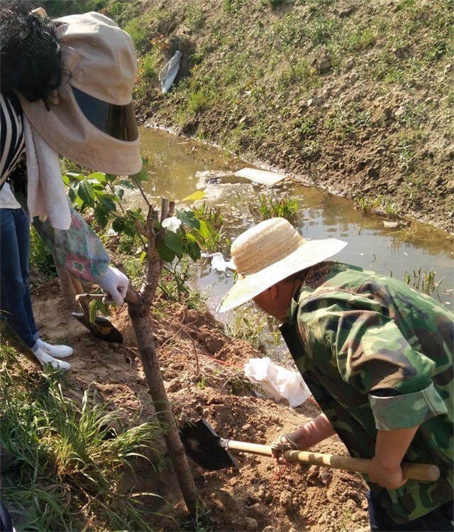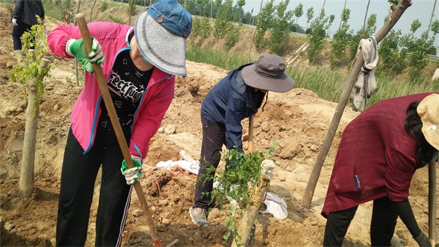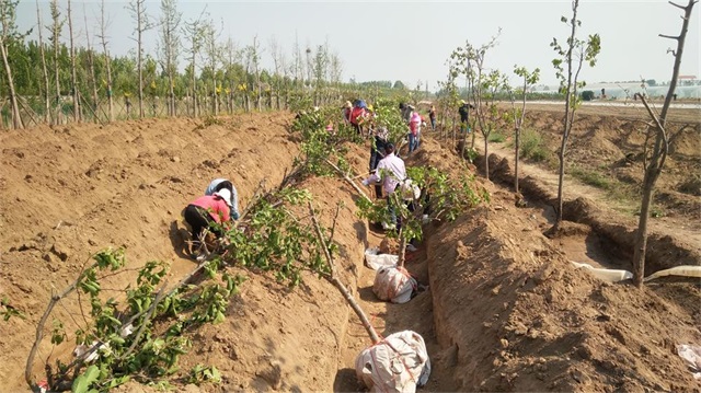 有地头沟边的“游击战”,在水渠两侧斜挖树坑,种下棵棵观赏花木。