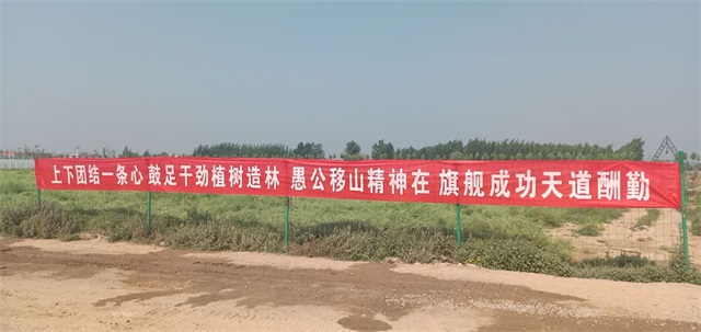 上下团结一条心,鼓足干劲植树造林,愚公移山精神在,旗舰成功天道酬勤!