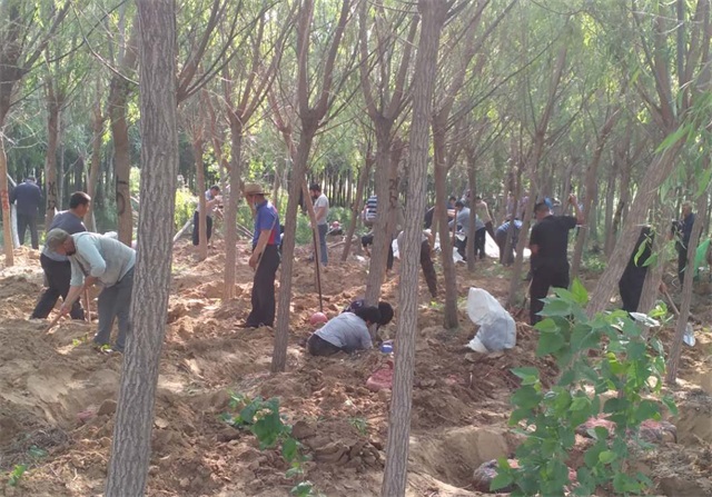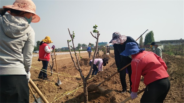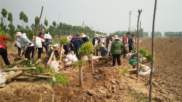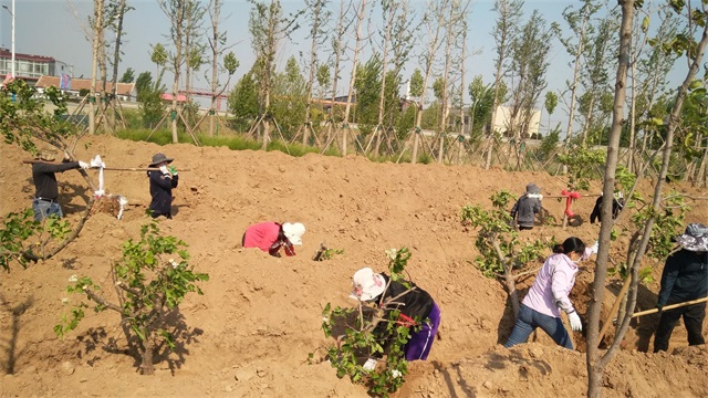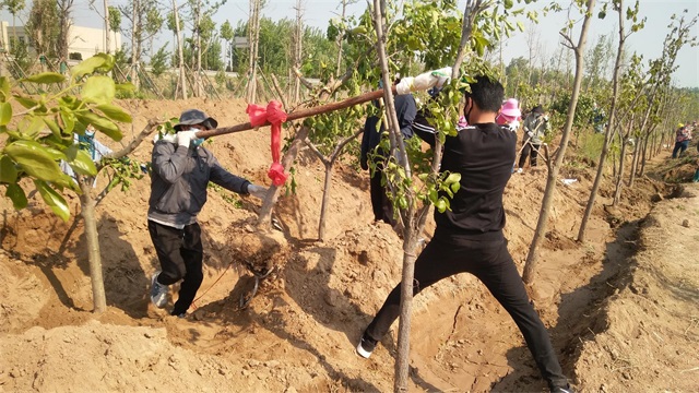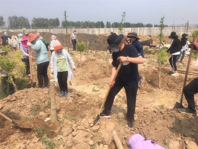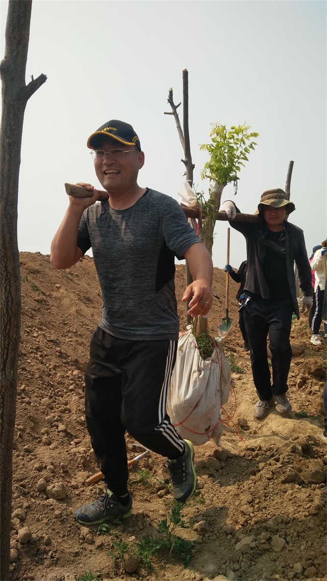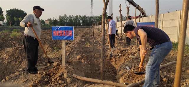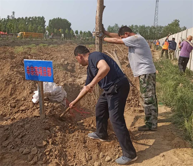 5月3日,机关人员“集中突击战”打响。虽说最高气温已达35度,但是大家热情高涨,为了保证树木成活率,顶住高温、拼尽全力,集团总经理韩利同志带领职工,抢抓时机、加快节奏将最后的500多棵槐树移栽完毕。虽然人人大汗淋漓,却满怀成功的欣喜。