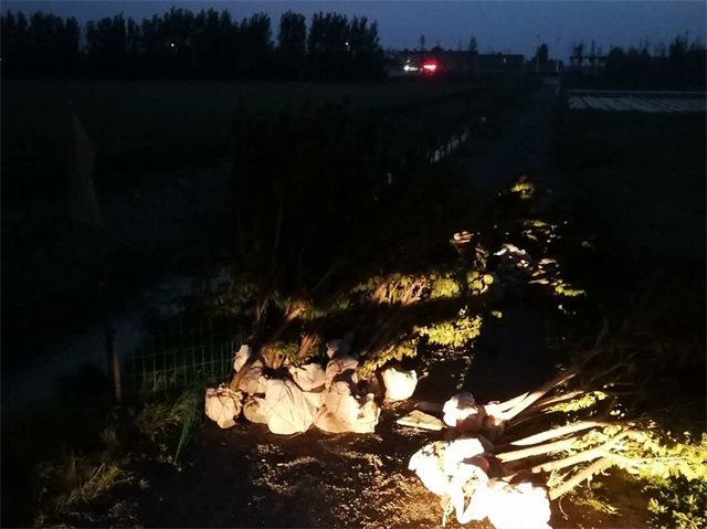 季节不等人,为了尽早将树木移植富足,各组人员挑灯夜战。