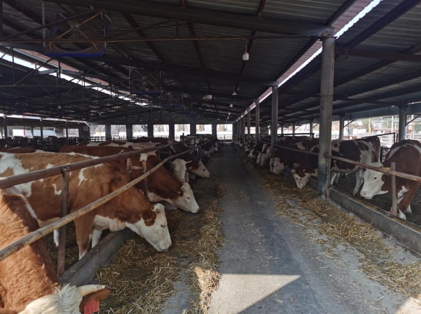 齐河县旗鲁生态农业有限公司是一家集种植、养殖、酿造、食品加工等于一体的大型产业化农业企业,目前肉牛存栏近1000头,其中母牛600多头,是齐河县最大的肉牛繁育场。在参观过程中,王光元主任介绍,目前整个园区占地1000余亩,基本实现了种养循环。王主任依次向参观一行介绍了母牛繁育舍、犊牛饲养舍、育肥舍以及饲草饲料加工车间等,公司技术人员还就公司目前的生产情况、存在的问题与专家进行了详细交流、探讨。
